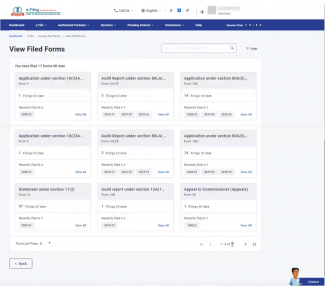 फ़ाइल किए गए फ़ॉर्म देखें सेवा ई-फ़ाइलिंग पोर्टल पर लॉगइन के बाद सभी पंजीकृत उपयोगकर्ताओं के लिए पहले से फ़ाइल किए गए आयकर फ़ॉर्म देखने के लिए उपलब्ध है। इस सेवा की मदद से आप: